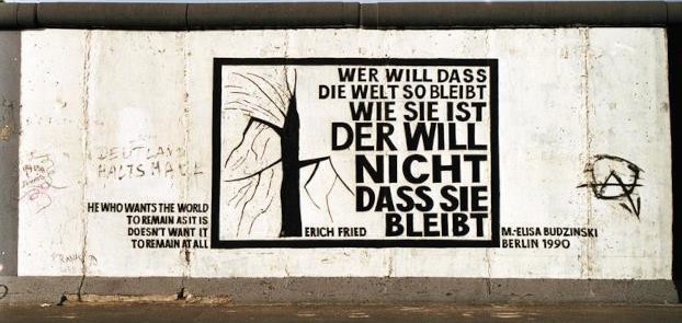 Erich Fried (1921 – 1988) wuchs als Kind jüdischer Eltern in Wien auf. Kurz nach dem „Anschluss“ Österreichs an Nazi-Deutschland, 1938, starb sein Vater nach einem Verhör durch die Gestapo. Erich gelang die Flucht nach London. Seine Erfahrungen aus diesen „finsteren Zeiten“ brachten ihn dazu, sich in Gedichten, Aufsätzen und Veranstaltungen zu Wort zu melden, wann und wo immer er Unrecht wahrnahm. Ein großes Anliegen von Erich Fried war es, die Menschen zu Geschwisterlichkeit und Solidarität zu ermutigen, und sich gegen die gesellschaftliche Entfremdung im Kapitalismus zur Wehr zu setzen. Nachhallend bis ins Heute seine Mahnung: „Wer will, dass die Welt so bleibt, wie sie ist, will nicht, dass sie bleibt.“